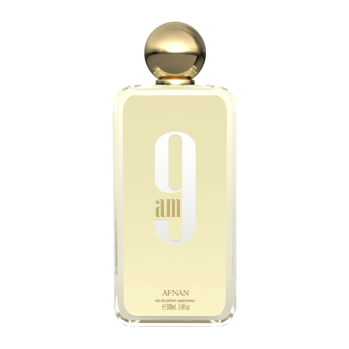 9 AM é um perfume unisexo da Afnan, com abertura fresca e cítrica de mandarina, limão, cardamomo e pimenta‑rosa. O coração floral combina lavanda, flor de laranjeira, maçã verde e rosa, enquanto a base amadeirada e terrosa é composta por almíscar, musgo, cedro e patchouli. Elegante e versátil, é ideal para o uso diário em climas mais quentes.